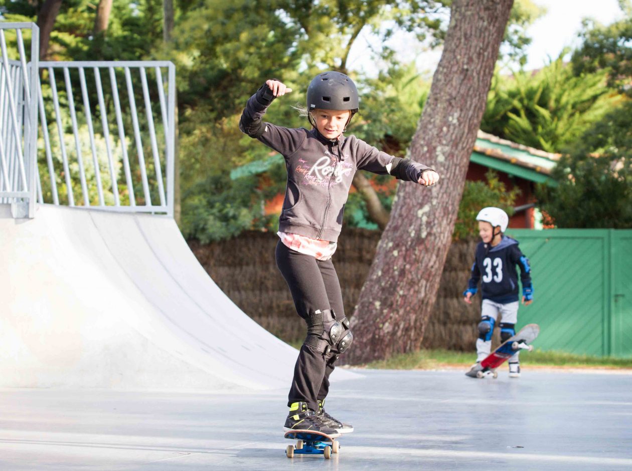 L’aire de glisse du Cap Ferret est réalisée en béton. D’une longueur de 37 m pour une largeur de 25 m, cet espace spécialement conçu pour la pratique du skateboard a une surface de 925 m². Elle est équipée de modules double lanceur (un quarter muni de deux plans inclinés) et d’une table centrale comprenant demi-pyramide, funbox, muret courbe et handrails.