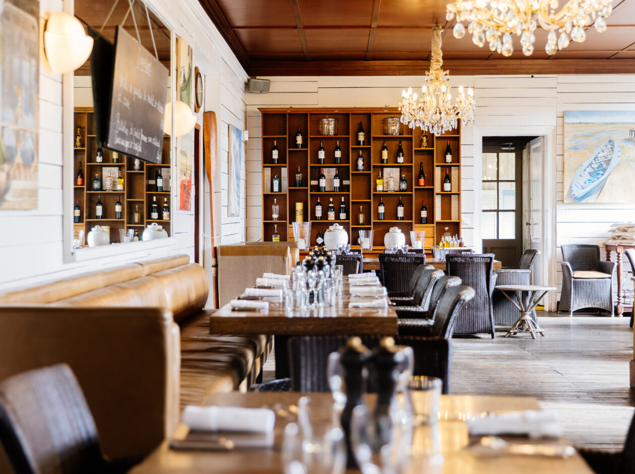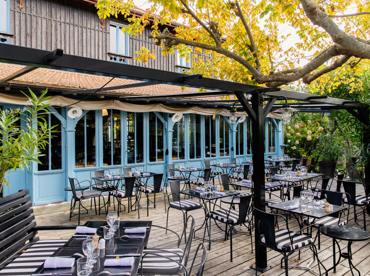 Dans le quartier ostréicole du Cap Ferret, c’est une ancienne bâtisse bardée de bois gris bleu et bordée d'une terrasse plantée d'hortensias, de lauriers blancs et de yuccas. La demeure abrite un hôtel et un restaurant, Le Bistrot du Bassin, qui détient le titre de Maître Restaurateur. Côté bistrot, la maison joue avec les produits de la mer, du Sud-Ouest et des saisons : la Saint-Jacques, le bar rôti, la daurade sur son lit de tomates, le rouget et le thon juste cuits, mais aussi le foie gras des Landes fait maison, la lamproie bordelaise ou le caviar de Gironde. Les légumes, le chef aime les servir croquants avec juste un filet d'huile d’olive ou bien en crème. Et pour les pâtisseries, la star de la maison se nomme madeleine et se déguste accompagnée de crèmes vanille, caramel, pistache. Beaucoup d’autres pâtisseries sont toujours servies sur un généreux buffet.