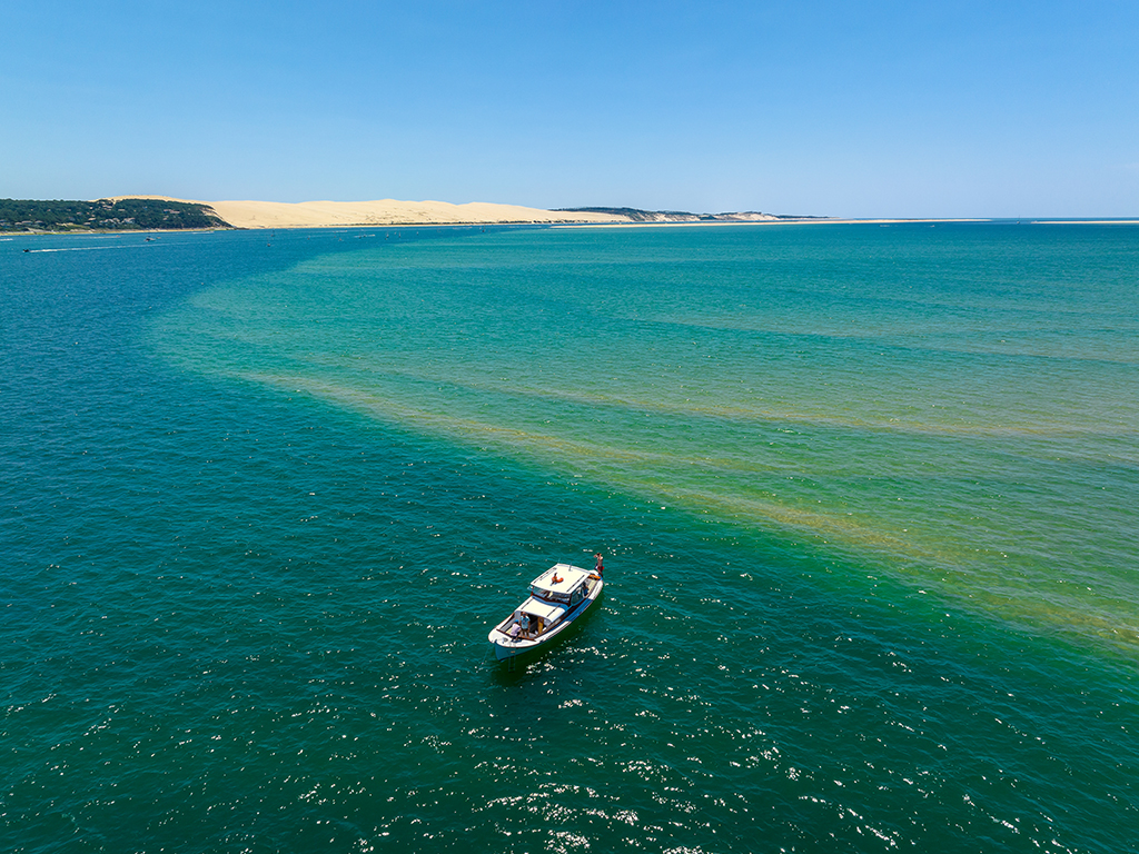 Grâce au Capitaine Nicolas, découvrez les secrets bien gardés de l'Île aux Oiseaux, avec ses Cabanes Tchanquées, les villages ostréicoles de la Presqu’Île du Cap Ferret, les bancs de sable, les marées changeantes, la Dune du Pilat et la réserve naturelle préservée du Banc d’Arguin.
