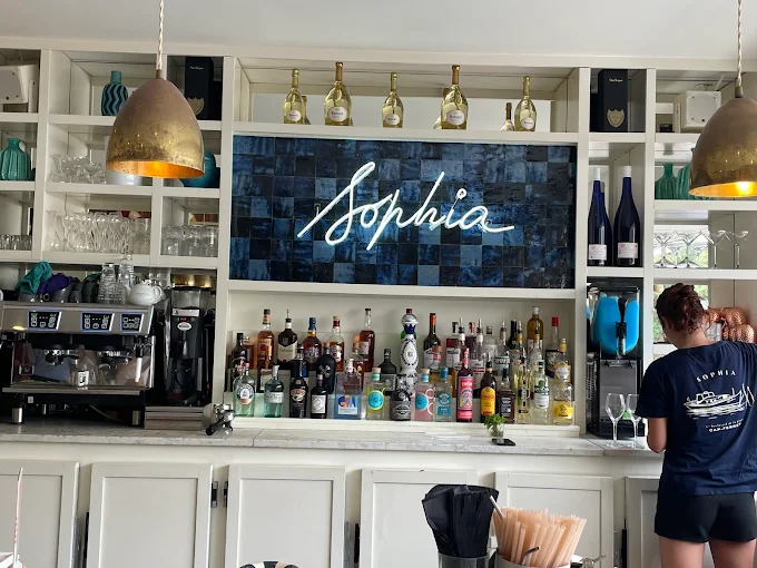 Des tons tout doux de vert d'eau et de blanc, du mobilier pour de grandes tablées entre copains, des espaces plus intimes pour les amoureux, chez Sophia avec son ambiance cosy- beach propose une jolie carte "cuisine bistronomique" pour déjeuner ou dîner. On s'installe aussi sur la terrasse pour prendre un verre, un thé ou un café.