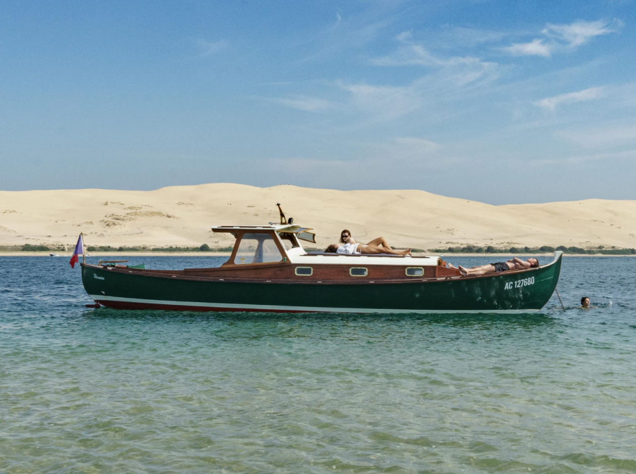 Vom Port de la Vigne aus bietet Locapferret die Vermietung der Pinasse "Léonie" mit einer Kapazität von 14 Plätzen und Skipper an.