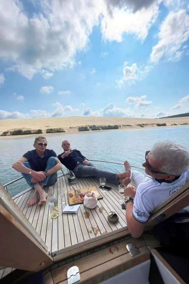 Climb aboard the Empreinte and explore the Bassin and its secret spots: l'Ile aux Oiseaux and its Cabanes Tchanquées, Dune du Pilat, Banc d'Arguin.... It's a promise! A promise to escape in the company of Patrick and Laurent? Formulas range from 2-hour private cruises to full-day cruises. Oyster tastings and picnics available on board.