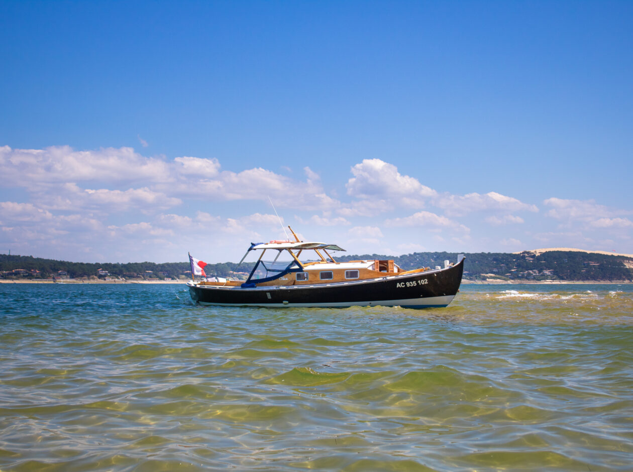 La pinasse Altaïr, d'une capacité de 12 personnes, est disponible à la location avec marin.