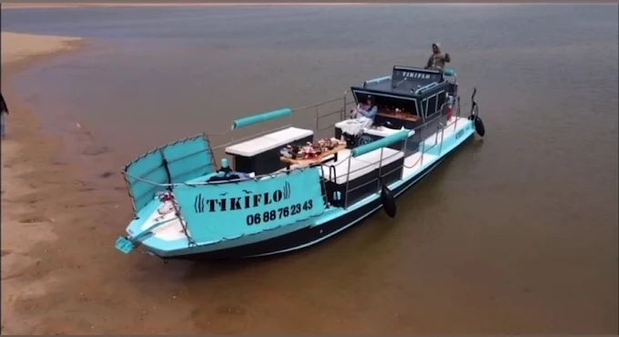 Le chaland Tikiflo d'une capacité de 12 places est disponible à la location.
